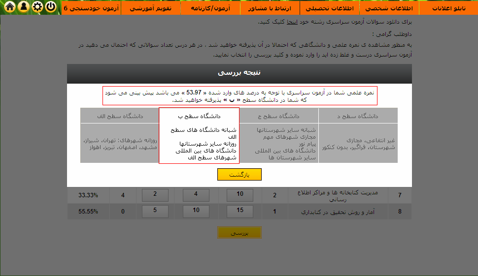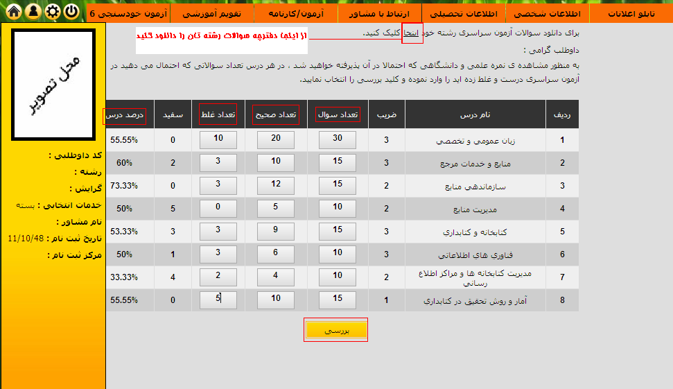 دوستان می توانند برای تعیین درصد و تعیین محل قبولی و دانلود سوالات به ترتیب مراحل زیر عمل کنند